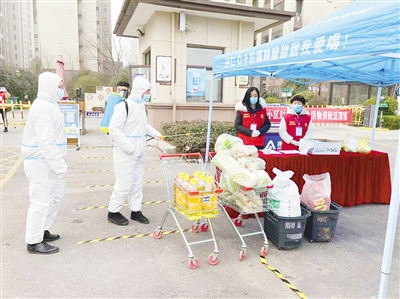 1月11日上午,西城區(qū)新城管理辦公室組織開展小區(qū)封控狀態(tài)生活物資配送演練。記者 張玲玲 攝