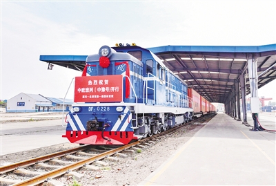 (記者 楊 光 通訊員 胡昭帝 張 昊)4月16日上午,河南中歐班列(中豫號)統(tǒng)一命名暨國際班列統(tǒng)籌開行儀式在鄭州舉行。開行儀式在我市設(shè)分會場。10點(diǎn)30分,隨著一聲令下,火車鳴笛,懸掛著“中歐班列(中豫號)”標(biāo)識的列車,滿載著貨物從漯河車站東貨場緩緩駛出。