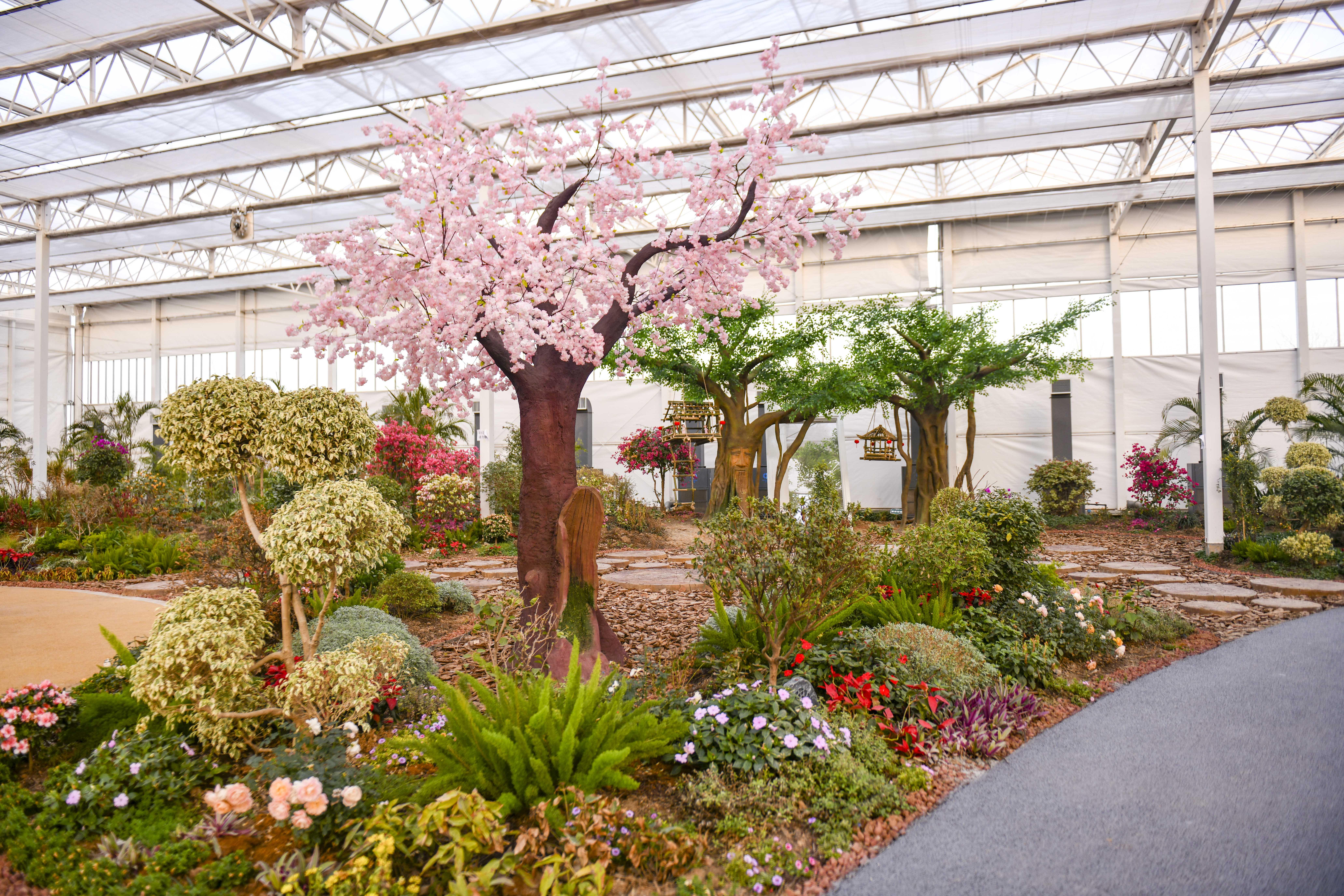 由一品紅、繡球花等打造而成春意盎然的春之舞花瀑;利用風(fēng)車造型Logo、竹船、紫色鼠尾草等讓人暢游在紫色海洋中的風(fēng)車花園、由藍(lán)黃相間的花朵打造而成的星空花境、由魔法樹和時(shí)空門打造穿越時(shí)空的時(shí)空花境……在工作人員的帶領(lǐng)下,記者依次進(jìn)入了不同的花境,每個(gè)花境都是一個(gè)不同主題和氛圍的花鏡景觀,令人眼花繚亂、應(yīng)接不暇。“在科普課堂,我們還種植了五感植物,比如捕蠅草、迷迭香、咖啡樹等,能讓孩子們更好地了解植物,觸發(fā)學(xué)習(xí)興趣。在百花幽谷,春節(jié)期間會有麗人行、魔術(shù)等節(jié)目。”李佳佳告訴記者。