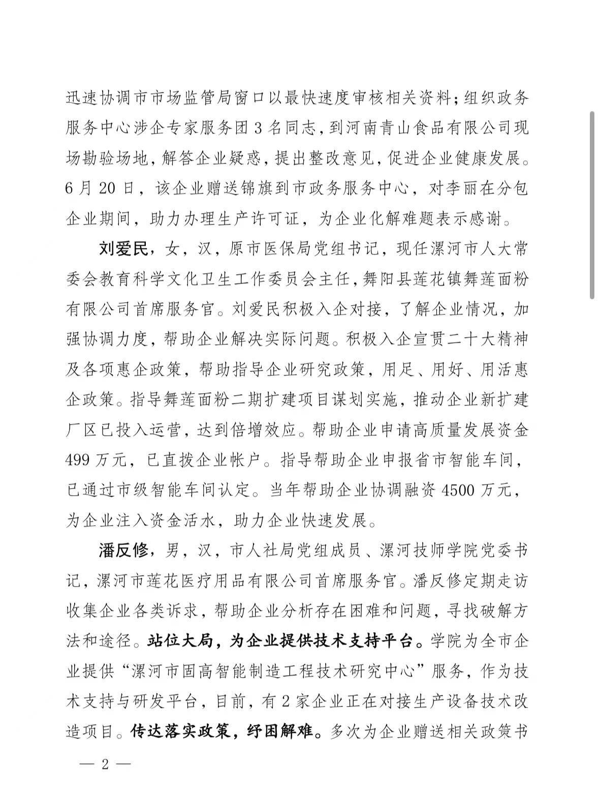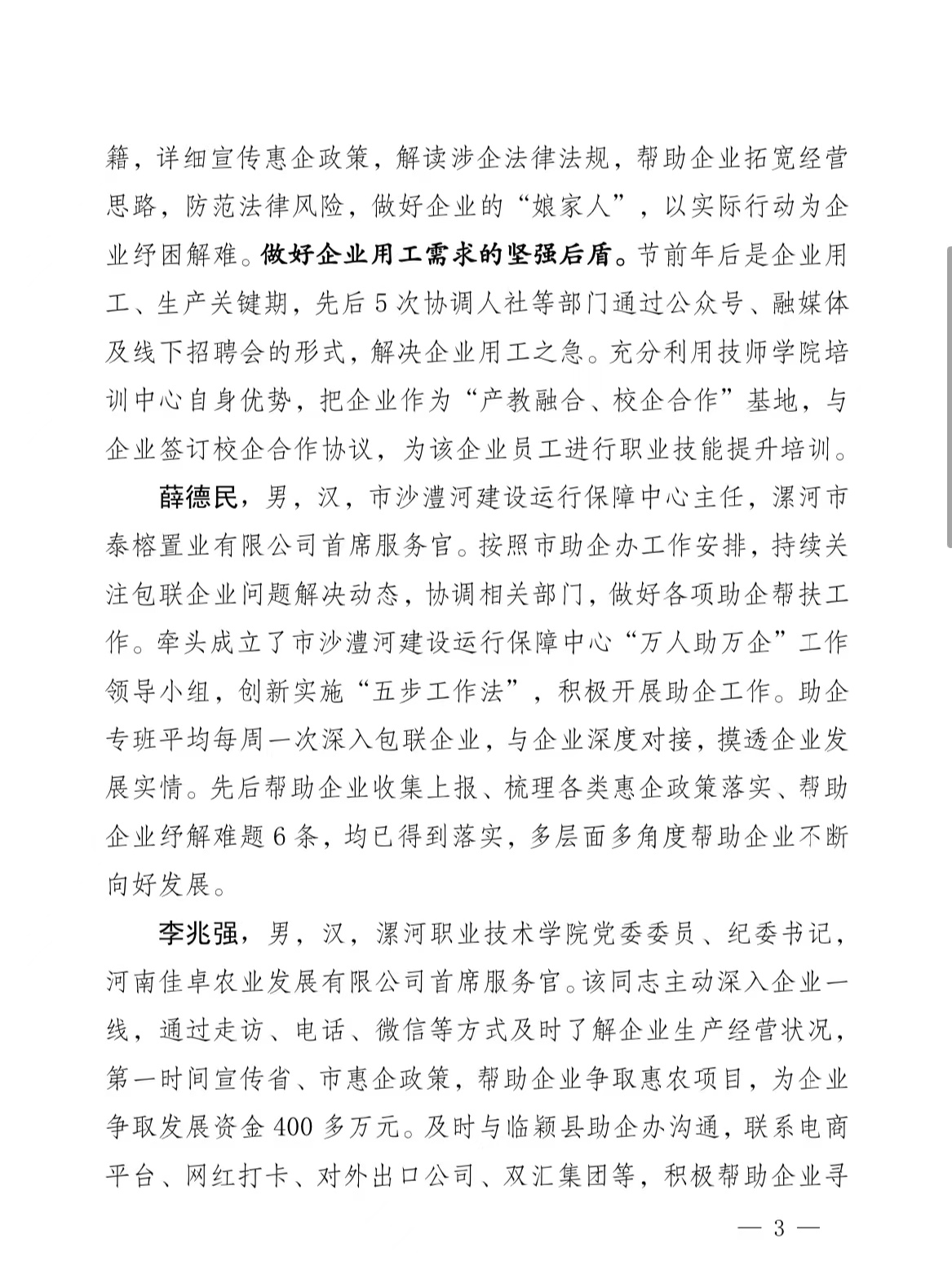 河南省“萬(wàn)人助萬(wàn)企” 活動(dòng) 漯河市2023年6月份“十佳首席服務(wù)官”