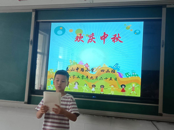 班隊(duì)活動分兩部分,第一部分是詩情畫意話中秋。同學(xué)們搜集與中秋節(jié)相關(guān)的資料,并在班內(nèi)交流,了解中秋節(jié)來歷,了解全國各地過中秋習(xí)俗,并從中解讀傳統(tǒng)節(jié)日在生活中的韻味。接著開展“中華經(jīng)典誦讀”活動。各班緊緊圍繞中秋佳節(jié),舉行以“月到中秋分外明”為主題的詩歌朗誦比賽,并組織同學(xué)們進(jìn)行與中秋節(jié)有關(guān)的詩歌創(chuàng)作活動。五一班一首《水調(diào)歌頭》讓孩子們感受到“中秋”夜的良辰美景,一個“月圓”已把同學(xué)們的心攏在了一起。六二班《中華少年》的朗誦比賽,各小組都憋足了勁,拔優(yōu)爭先,一副認(rèn)真勁十足的樣子,
