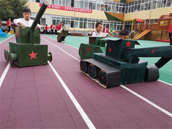 活動伊始,老師們帶來了精彩的舞蹈節(jié)目—《中國范兒》。精神醒目的紅色舞衣,整齊劃一的鼓舞動作,聲聲震撼的鼓點敲擊,老師們像精靈般舞動著,在花鼓上演繹出振奮人心的樂章;歌伴舞《我和我的祖國》,老師們用歌聲向祖國深情告白,唱出了對祖國的拳拳赤子之心。中班組小朋友精神飽滿,他們開著自制坦克、飛機、軍艦,喊著響亮口號,用陽光自信、朝氣蓬勃的氣勢展現(xiàn)著愛祖國的決心。