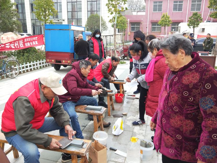 活動(dòng)現(xiàn)場(chǎng)剛布置好,村民們就拿著菜刀、剪刀,來(lái)到了活動(dòng)現(xiàn)場(chǎng)等候,見(jiàn)到到來(lái)的村民們,磨刀師傅王躍偉、王留義、馮三喜、閆軍倉(cāng)、王秀根立馬擺開(kāi)架勢(shì)給大家磨起了刀,大家都露出了滿(mǎn)意的笑容。村民們紛紛表示:“磨剪子戧菜刀”的手藝人越來(lái)越少了,在家里也很少聽(tīng)到他們的吆喝聲了,家里很多刀具用的時(shí)間長(zhǎng)了,都有點(diǎn)鈍了,有的放的時(shí)間長(zhǎng)了,都生銹了,燕山路社區(qū)能來(lái)到我們村,做這樣的義務(wù)活動(dòng),真是太方便了。