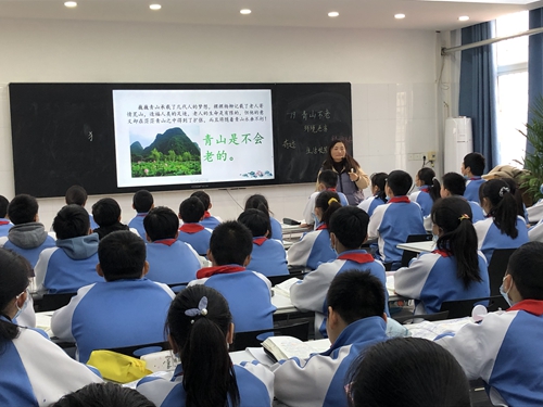 六年級的李敏杰老師,給我們帶來了《青山不老》。李老師課堂節(jié)奏緊湊,注重知識的連貫性,熟練的運(yùn)用多媒體教學(xué),渲染氛圍,吸引學(xué)生注意力調(diào)動學(xué)生積極性!學(xué)生們預(yù)習(xí)認(rèn)真,整節(jié)課自學(xué)氛圍很濃厚。