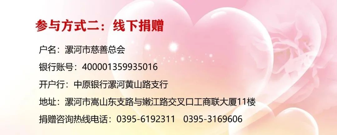 做慈善事業(yè)的行動者,當愛心奉獻的傳播者。漯河市在騰訊網(wǎng)絡募捐平臺設立了“慈善漯河·情暖沙澧”項目,即日起即可捐贈,9月7、8、9三天為項目集中捐贈配捐時間,爭取騰訊、企業(yè)配捐更多資金,以實際行動弘揚傳統(tǒng)美德,更好傳播慈善文化、增強全民慈善意識,募集更多資金,助力“中華慈善日”、“漯河慈善月”在漯河的落地、落實。