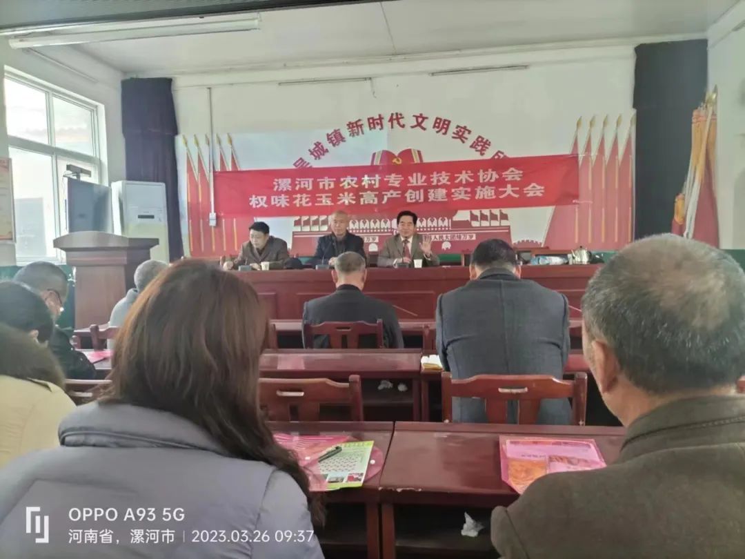 2023年3月26日上午,漯河市農(nóng)村專業(yè)技術(shù)協(xié)會在吳城鎮(zhèn)召開玉米高產(chǎn)創(chuàng)建實施大會。來自舞陽縣吳城鎮(zhèn)的種植大戶,家庭農(nóng)場主和權(quán)味花種植專業(yè)合作社參加了會議。