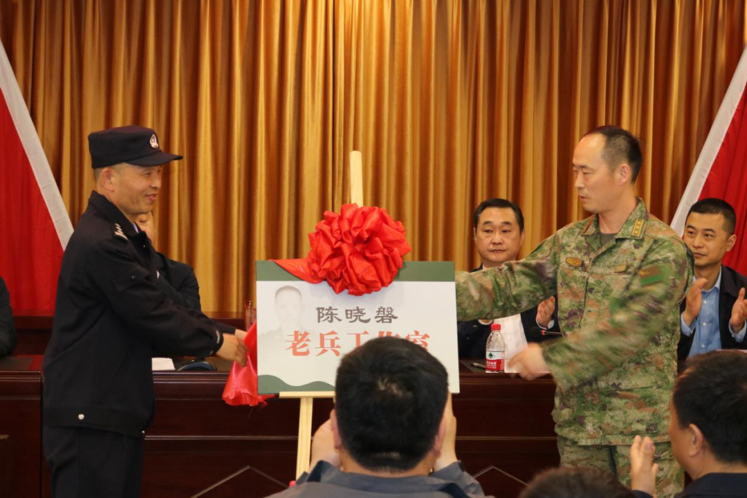 漯河軍分區(qū)政治工作處上校主任、漯河市退役軍人事務(wù)局黨組成員、副局長李世偉為“陳曉磐老兵工作室”揭牌。