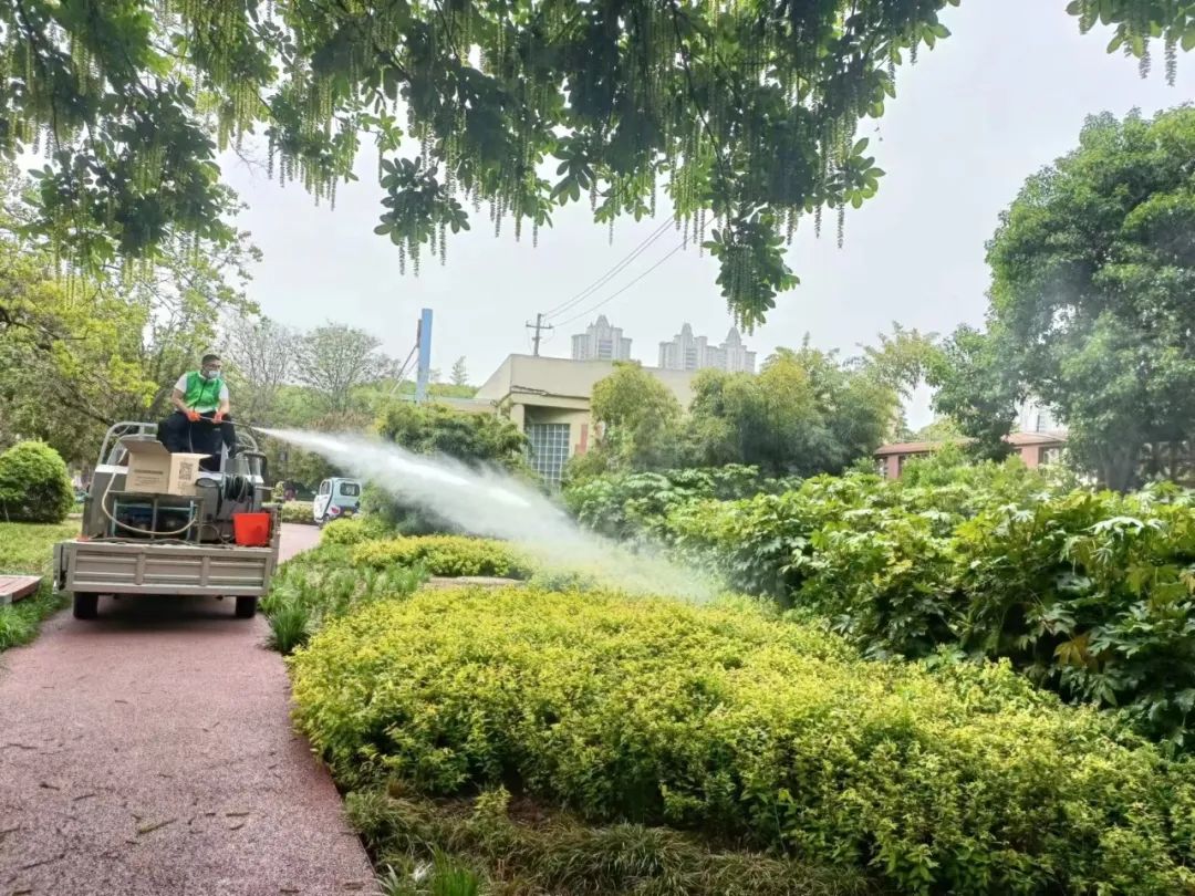 針對園林蟲害特點,市城管局園林綠化養(yǎng)護中心秉承“預防為主、防治結合、科學防治”的方針,采取了多項綜合防治措施:一是根據病蟲害監(jiān)測情況采取藥物灌根方式防治園林植物蚜蟲;二是對管轄范圍內行道樹、綠籬、游園實施噴灑防治,為避免日間水車噴藥可能造成的交通擁堵和藥物飛散,給市民造成的不便,必要時選擇錯峰作業(yè),利用夜深時段開展防治工作;三是利用害蟲的趨黃性懸掛黃色粘蟲板防治蚜蟲、粉虱成蟲。截止目前,市園林中心共灌根防治黃山欒、紅葉李、碧桃等4900余株;夜間噴藥防治共出動藥車、霧炮車53臺次;懸掛、更換黃色粘蟲板、防蟲膠帶1.8萬余株,本階段防治任務已完成90%以上,有效遏制了蟲害的大發(fā)生和蔓延。
