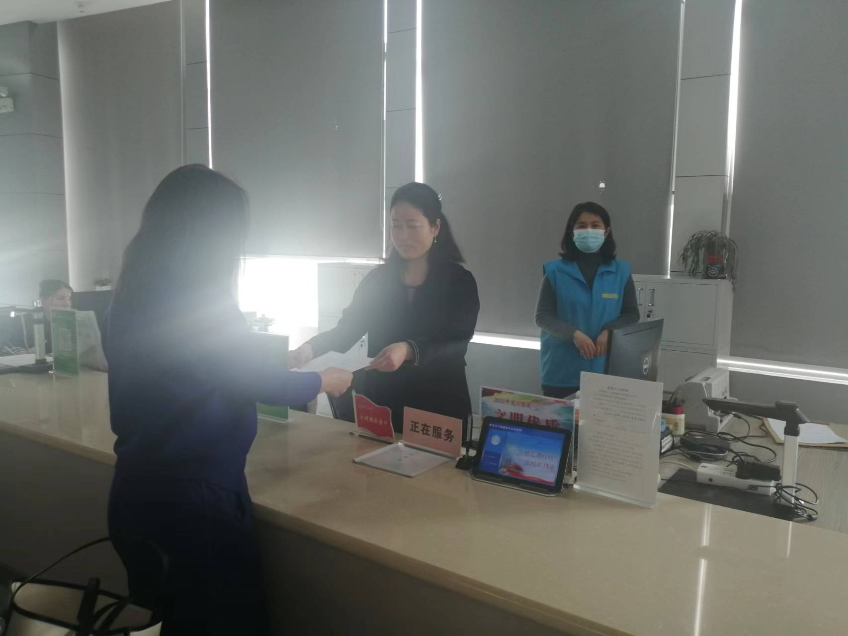 首先,李小青局長以普通群眾的身份現(xiàn)場模擬辦理了“互聯(lián)網(wǎng)上網(wǎng)服務(wù)營業(yè)場所設(shè)立”事項,從事前咨詢、排隊取號、提交資料、辦結(jié)答復(fù)等環(huán)節(jié)全流程體驗。隨后,以窗口工作人員身份為江西樂揚文化傳媒公司申請“營業(yè)性演出備案”的王女士當(dāng)即審核辦結(jié)了“郾城區(qū)營業(yè)性演出準(zhǔn)予備案決定”。手里接過“準(zhǔn)予備案決定”文書的王女士對申請備案當(dāng)場辦結(jié)的快捷、便利服務(wù)連連稱贊。