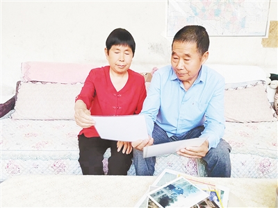 趙新乾和老伴趙蘭英在翻看旅游時(shí)的照片。