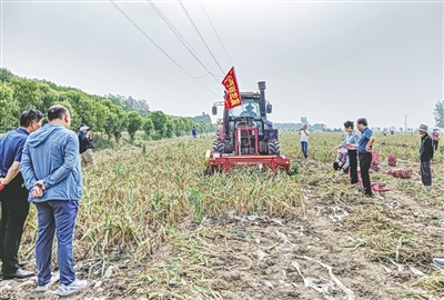 新型農(nóng)機設(shè)備 助力大蒜收獲