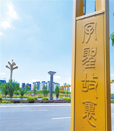 牡丹江路兩旁的路燈燈桿上寫著的“字聖故裏”四字。