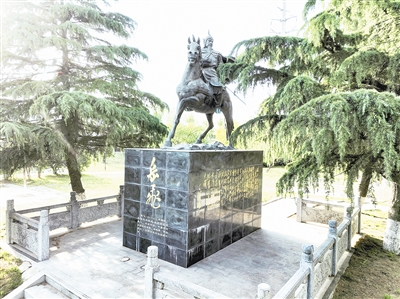市區(qū)河堤公園里的岳飛塑像。記者 張麗霞 攝