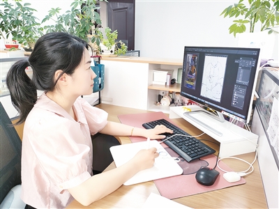 漯河日報(bào)社美編柏淑華在創(chuàng)作公益漫畫。