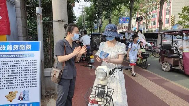 “如果有人告訴你有個收益高風險小的項目喊你加盟投資,你可要小心是不是非法集資……”6月15日上午,漯河中院法官們在黃山路陽光世紀苑小區(qū)門前設置宣傳點,開展“守住錢袋子 護好幸福家”防范非法集資宣傳,提升社會公眾防范非法集資的意識和能力,厚植全民防非、主動拒非的良好社會氛圍。