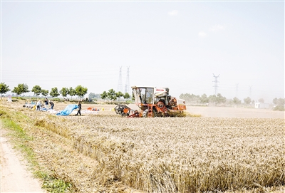 記者看到,不遠處還有多臺大型收割機在一眼望不到邊的麥地里馳騁。“村干部全部都在地里忙,已經連續(xù)幾天沒有好好休息了。”潘三偉說,村里的5臺大型收割機連夜作業(yè)提高麥收效率,全村2000多畝小麥,目前已經收割過半,趁著墑情較好,部分收割過的地里已經及時播種。