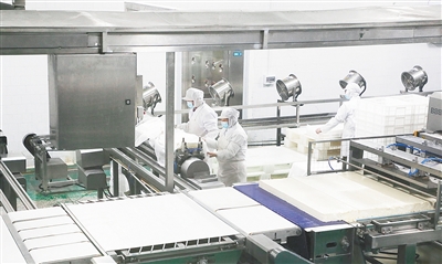 南街村集團(tuán)豆制品生產(chǎn)線是目前國內(nèi)最先進(jìn)的豆腐生產(chǎn)線,每天消耗大豆三十噸,生產(chǎn)豆腐七十多噸。其特有的巴氏殺菌技術(shù),實現(xiàn)了豆腐產(chǎn)品從生產(chǎn)線到老百姓餐桌的全程無污染,豆腐存放時間相對延長。