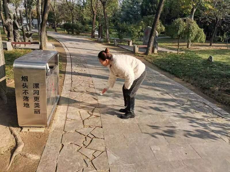11月18日,許慎文化園,這位游客在自覺(jué)撿垃圾。