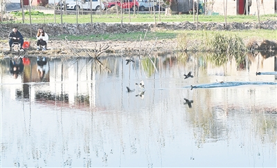 “過(guò)去,這處坑塘由于疏于管理,水面上到處都漂浮著白色垃圾,時(shí)常散發(fā)出陣陣臭氣?,F(xiàn)在,坑塘經(jīng)過(guò)整治后,水清了,野鴨也回來(lái)了。”12月4日,在商橋鎮(zhèn)商南村,村民李新生指著村里整治過(guò)的坑塘對(duì)記者說(shuō)。記者看到,一群野鴨時(shí)而貼著水面嬉戲,時(shí)而在淺水處覓食。