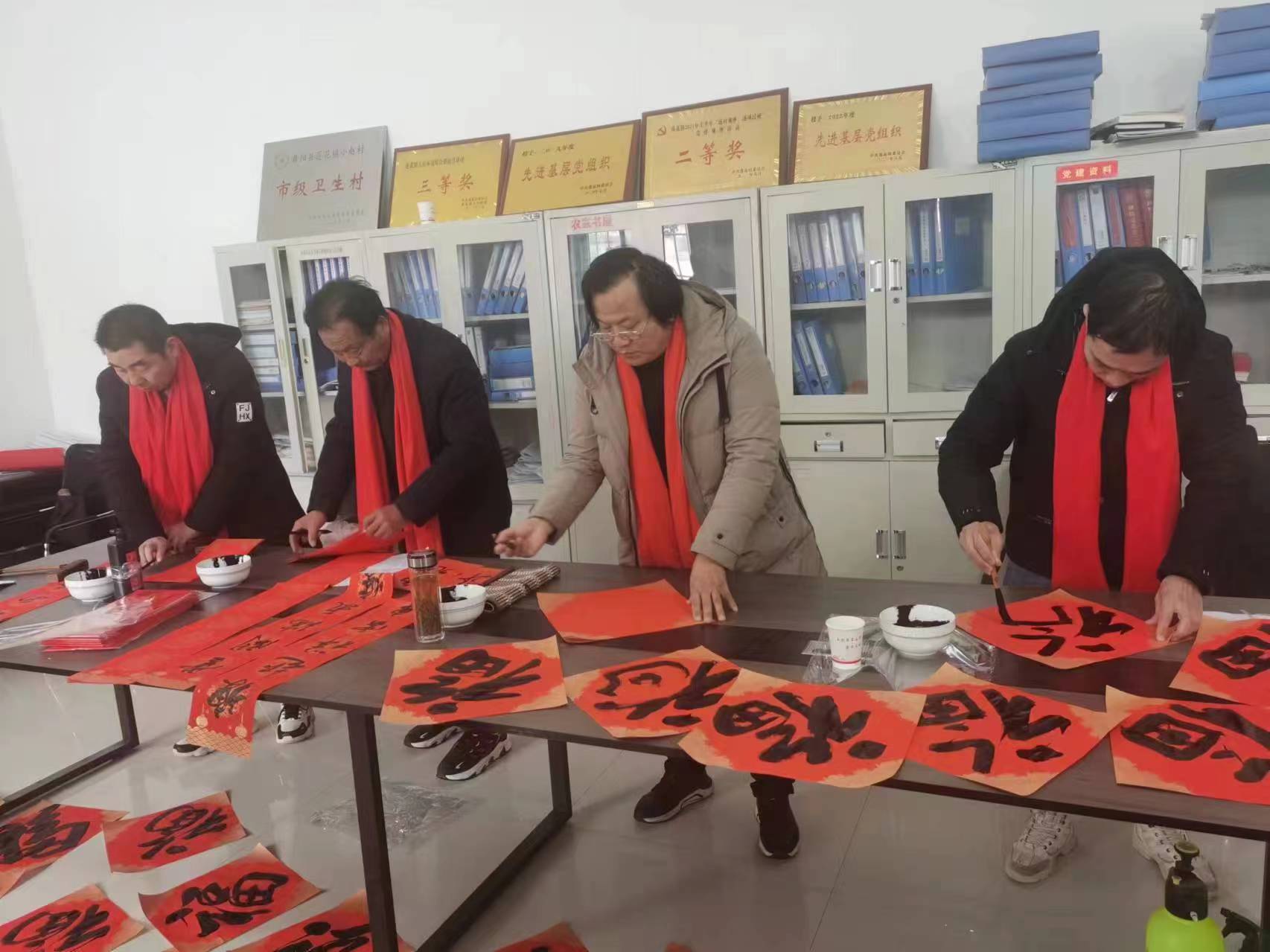 為豐富傳統(tǒng)節(jié)日文化內(nèi)涵,弘揚中華優(yōu)秀傳統(tǒng)文化,進一步提升群眾幸福感、滿意感,春節(jié)前夕,市委編辦派駐舞陽縣蓮花鎮(zhèn)小趙村第一書記宋濤邀請市書法家協(xié)會副主席趙新閣一行到對口幫扶的舞陽縣蓮花鎮(zhèn)小趙村開展“寫春聯(lián)送祝福”活動。