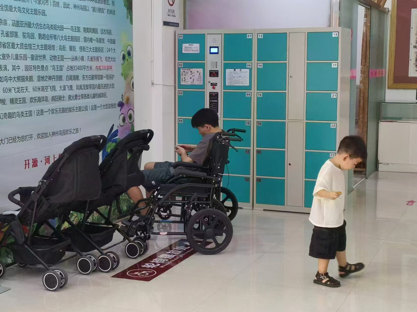 中秋節(jié)期間神州鳥園:一位游客坐輪椅玩手機很不文明。