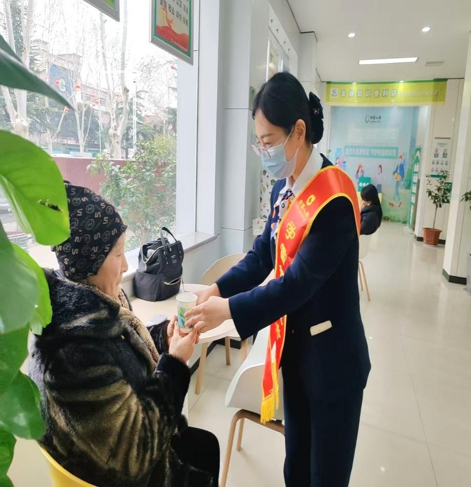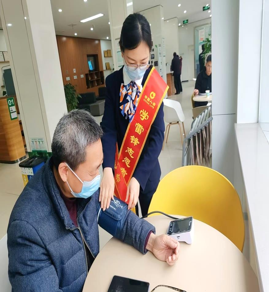 活動(dòng)當(dāng)天,營(yíng)業(yè)廳內(nèi)設(shè)置了“雷鋒服務(wù)崗”,身披紅色綬帶的志愿者們熱情滿滿。為客戶提供熱情周到的服務(wù),協(xié)助客戶辦理業(yè)務(wù),耐心協(xié)助填寫各種表格,為客戶端上熱水,并為老年人測(cè)量血壓,用溫暖的微笑和貼心的服務(wù),讓客戶在辦理業(yè)務(wù)的同時(shí)感受到了濃濃的關(guān)懷。