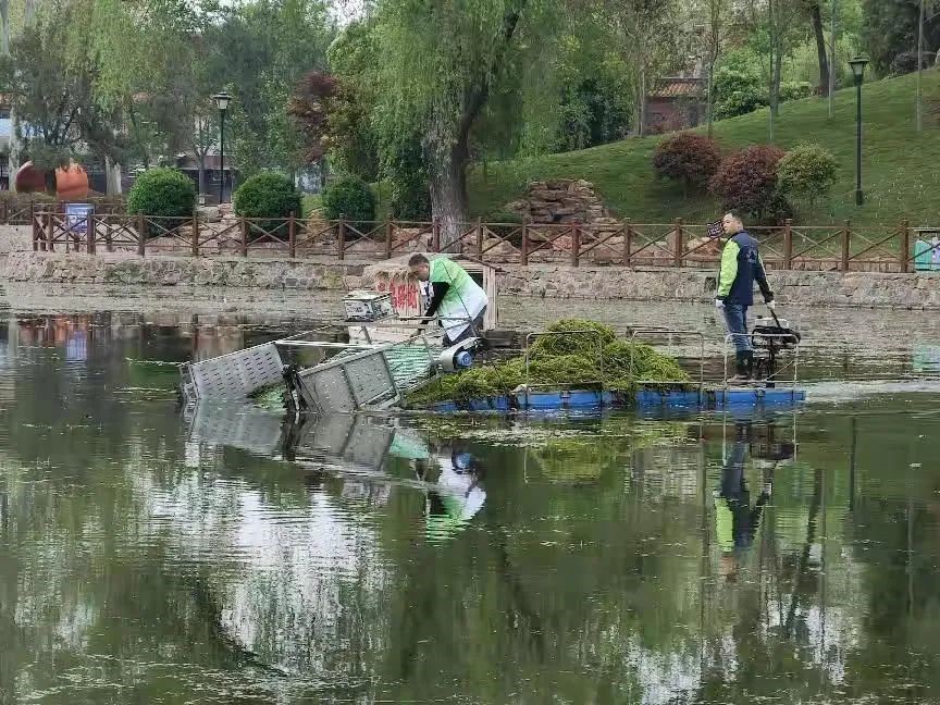 精細管養(yǎng):織就湖面生態(tài)錦緞。“一日六巡兩清” 是養(yǎng)護人員養(yǎng)護日志里的工作準則。每天9點前,養(yǎng)護人員就會駕駛打撈船完成第一次湖面漂浮物清理,到了15點還會進行第二次復(fù)檢,力求讓落葉、雜物打撈干凈。通過優(yōu)化水體循環(huán)系統(tǒng),湖內(nèi)已形成"荷花—微生物—水鳥"的微型生態(tài)鏈:荷花根系固定淤泥、凈化水質(zhì),為魚蝦提供庇護;水草適度生長為鳥類提供天然食物,鳥兒橘紅色腳掌劃開水面的畫面,已成荷塘靈動一景。
