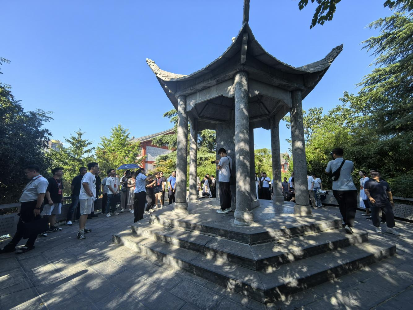 學(xué)員們仰望19.45米象征著1945年那個永載史冊年份的受降亭,走在象征中國人民八年浴血奮戰(zhàn)的八大臺階上,與歷史對話,與靈魂交流;通過聆聽講解、觀看歷史圖片、實物展品及影像資料,詳細了解了中州地區(qū)尤其是漯河在抗日戰(zhàn)爭時期的重要歷史事件、英雄人物事跡及當(dāng)?shù)厝罕姷目箲?zhàn)歷程,沉浸式感悟革命先輩在艱苦環(huán)境中堅守信仰、奮勇抗?fàn)幍膼蹏髁x精神與擔(dān)當(dāng),深化對國情的認(rèn)知。同時,借助國情教育與紅色文化傳承深度結(jié)合,教育學(xué)員們勿忘國恥、奮發(fā)圖強。