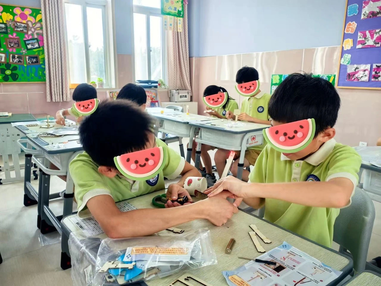 午后,孩子們又投入到了科學(xué)小制作的活動中。桌上擺滿了各種材料和工具,從簡單的紙張、吸管到復(fù)雜的電路元件,應(yīng)有盡有。指導(dǎo)老師耐心地為孩子們講解每個項目的原理與制作方法,鼓勵他們發(fā)揮想象力,動手創(chuàng)造出屬于自己的“科學(xué)作品”。在老師的指導(dǎo)下,孩子們或獨(dú)自思考,或三五成群地討論方案。有的制作了簡易的風(fēng)力發(fā)電機(jī),利用風(fēng)力驅(qū)動小燈泡發(fā)光;有的則制作了有趣的磁懸浮列車模型,通過磁鐵的相互作用展示科學(xué)的魅力。每一件作品都凝聚著孩子們的智慧與汗水,是他們探索未知世界的寶貴成果。(作者:康冰倩)