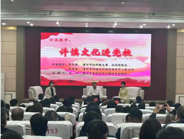 為深入學(xué)習(xí)習(xí)近平文化思想,貫徹落實(shí)中央和省委、市委關(guān)于文化建設(shè)的工作部署,推動(dòng)我市“四大本土文化”創(chuàng)造性轉(zhuǎn)化、創(chuàng)新性發(fā)展,11月6日上午,市社科聯(lián)主席、社科院院長(zhǎng)李華強(qiáng),市許慎文化研究保護(hù)中心副主任朱菲輝受邀走進(jìn)黨校秋季學(xué)期第二期主體班課堂,開展了“許慎文化進(jìn)黨校”專題訪談教學(xué),市委黨校科技文化教研室副主任、副教授華冰主持。