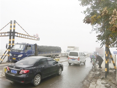 11月29日,記者看到網(wǎng)友“僅此而已”發(fā)的消息后,來(lái)到了107國(guó)道沙河橋看到,在107國(guó)道由南向北方向車輛較多,行駛緩慢。橋西半幅依然限高,而橋東半幅的限高桿已經(jīng)打開,在東半幅橋面中間,有一些石墩把橋面一分為二,由南向北的車輛走東半側(cè),由北向南的走西半側(cè)。