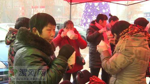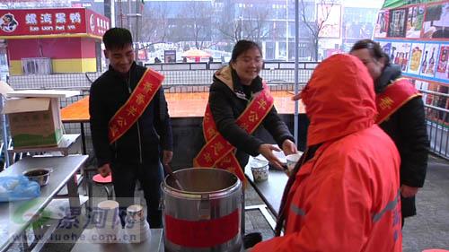 煙廠花園也是我市的人流密集區(qū)域,雖然天上飄著小雨,但仍有大批的愛心志愿者在這里忙碌著,他們正在為過往的市民送上一碗碗熱氣騰騰的愛心粥。除此之外,在丹尼斯、火車站廣場這些漯河最繁華的地段,這里的志愿者從早上七點就開始準備了,他們說,這些粥不僅要為大家?guī)矶盏臏嘏?,也要送上?jié)日的祝福。