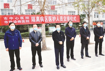 • 市中心醫(yī)院市傳染病醫(yī)院隔離病區(qū)醫(yī)護人員實現(xiàn)首次換崗 蒿慧杰劉尚進等出席交接儀式