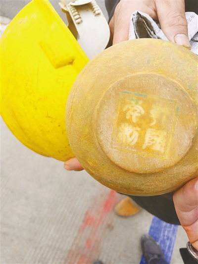 “這是在附近工地干活的時候挖出來的,也不敢給老板說。你們看看,這‘文物’值多少錢?給個價。”男子邊說邊從懷里捧出來一個碗。