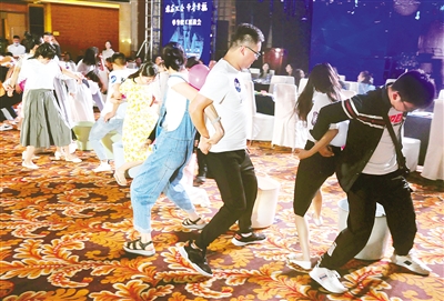 當(dāng)晚的聯(lián)誼會(huì)活動(dòng)分為“青春與愛情”“時(shí)光中的你和我”“幸福的傳遞”“緣來是你”四個(gè)篇章。有精彩有趣的互動(dòng)游戲(如圖)、愛情觀分享、真情告白等環(huán)節(jié),讓大家在輕松浪漫的氛圍中尋找屬于自己的幸福。