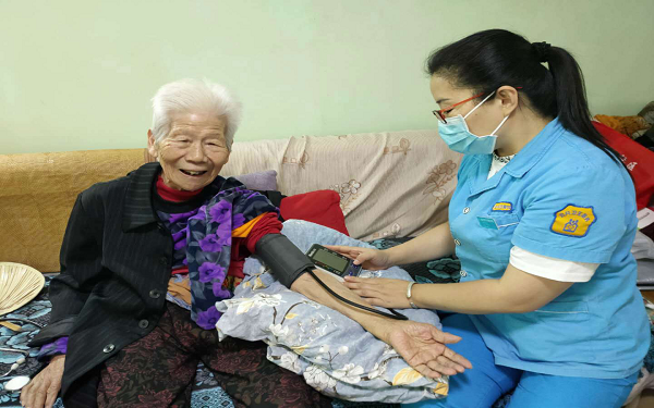 義診活動如火如荼的開展,走訪慰問活動也在同步進行。雙龍社區(qū)工作人員和社區(qū)衛(wèi)生服務(wù)中心的醫(yī)務(wù)志愿者們在百忙之中前往孤寡老人住所,開展慰問活動,為社區(qū)孤寡、困難老人送上柴雞蛋、蘋果等中秋節(jié)慰問品,為老人測量血壓,主動詢問老人的生活狀況,聊聊家常,志愿者的到來也為原本冷清的老人住所帶來了生機與活力,以及家的溫暖。