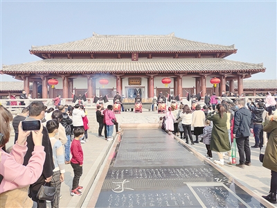 眾多游客到許慎文化園游玩。