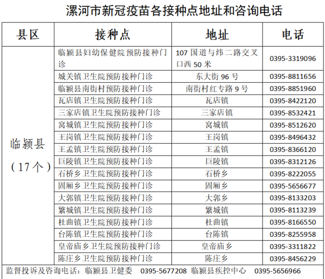 臨潁縣疾控中心電話: 0395-5656918 13733963831