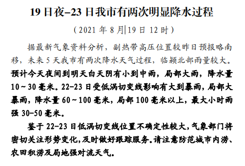 來源:漯河市氣象局 時(shí)間:2021-08-19 15:05:00 點(diǎn)擊:
