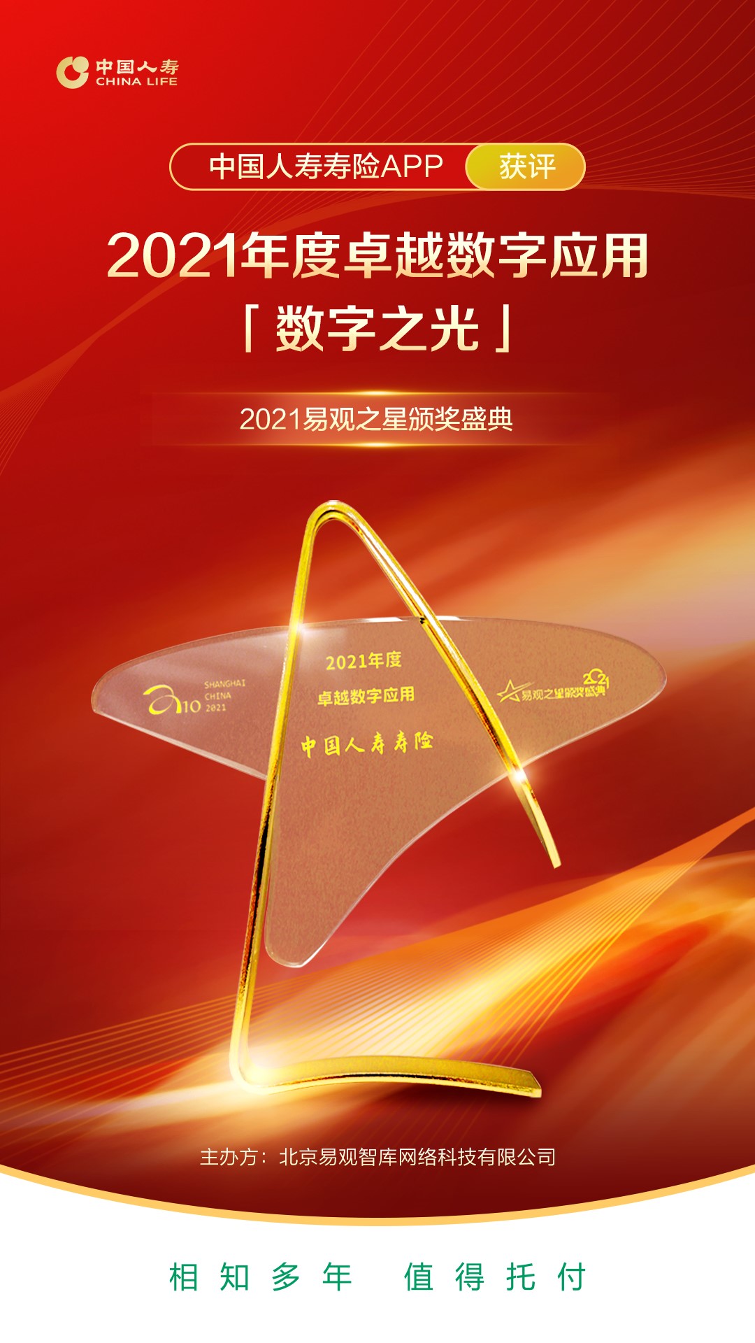 10月28日晚,“數(shù)字之光”2021易觀之星頒獎(jiǎng)盛典隆重舉行。前期,組委會(huì)從第三方視角對(duì)參評(píng)企業(yè)在數(shù)字化升級(jí)進(jìn)程中的競(jìng)爭(zhēng)潛力、運(yùn)營(yíng)水平、投資價(jià)值以及用戶基礎(chǔ)等維度進(jìn)行考察,綜合考量企業(yè)的數(shù)字化發(fā)展實(shí)力,并進(jìn)行了排名。獎(jiǎng)項(xiàng)用于表彰在數(shù)字經(jīng)濟(jì)蓬勃發(fā)展進(jìn)程中守正出新的典范。中國(guó)人壽壽險(xiǎn)APP(以下簡(jiǎn)稱“壽險(xiǎn)APP”)首次參與評(píng)選,最終榮獲“2021年度卓越數(shù)字應(yīng)用”獎(jiǎng)項(xiàng)。