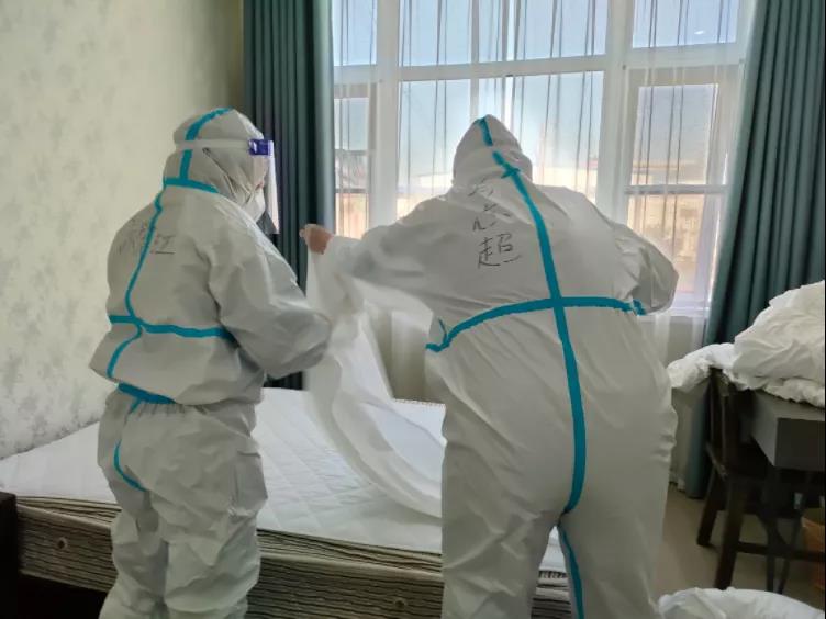 11月9日11時(shí)30分,在位于郾城區(qū)太行山路北段的郾城區(qū)第一集中隔離點(diǎn)內(nèi),工作人員正在體溫檢測(cè)、穿戴醫(yī)學(xué)防護(hù)服后進(jìn)入隔離區(qū)域,為隔離人員挨個(gè)送去午餐。隨即就要對(duì)隔離區(qū)進(jìn)行日常的消毒工作,為隔離人員測(cè)量體溫,做好醫(yī)學(xué)觀察記錄,整個(gè)過程都在無人員直接身體接觸的情況下進(jìn)行。