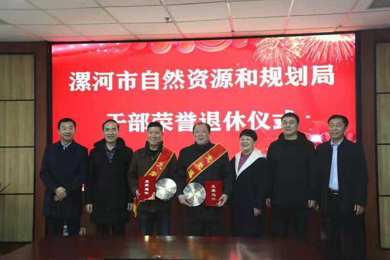 歲月更迭、四季輪回,在2022年元旦佳節(jié)來臨之際,12月31日上午,漯河市自然資源和規(guī)劃局隆重舉辦首次干部榮譽(yù)退休儀式,歡送2021年12月光榮退休的四級調(diào)研員趙彥華、常志剛2名同志。黨組書記、局長趙鵬,黨組成員、副局長趙曉紅,黨組成員、副局長劉松濤,黨組成員、土地儲備中心主任杜建輝,一級調(diào)研員李軍學(xué)、監(jiān)察支隊(duì)隊(duì)長楊衛(wèi)華和相關(guān)科室人員參加儀式。儀式由人事教育科馬禎同志主持。