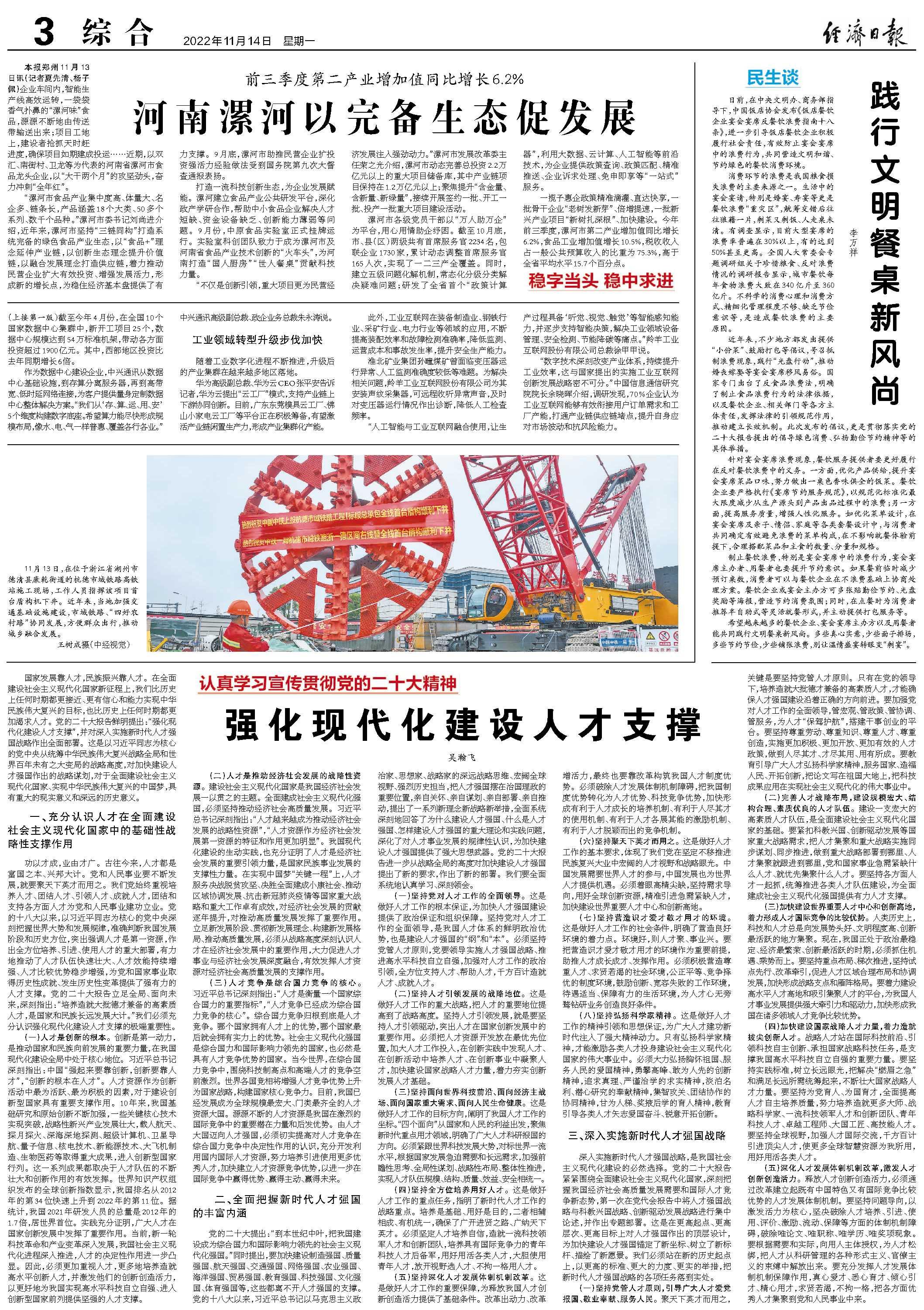一攬子惠企政策精準(zhǔn)滴灌、直達(dá)快享,一批骨干企業(yè)“老樹發(fā)新芽”、倍增提速,一批新興產(chǎn)業(yè)項(xiàng)目“新樹扎深根”、加快建設(shè)。今年前三季度,漯河市第二產(chǎn)業(yè)增加值同比增長(zhǎng)6.2%,食品工業(yè)增加值增長(zhǎng)10.5%,稅收收入占一般公共預(yù)算收入的比重為75.3%,高于全省平均水平15.7個(gè)百分點(diǎn)。