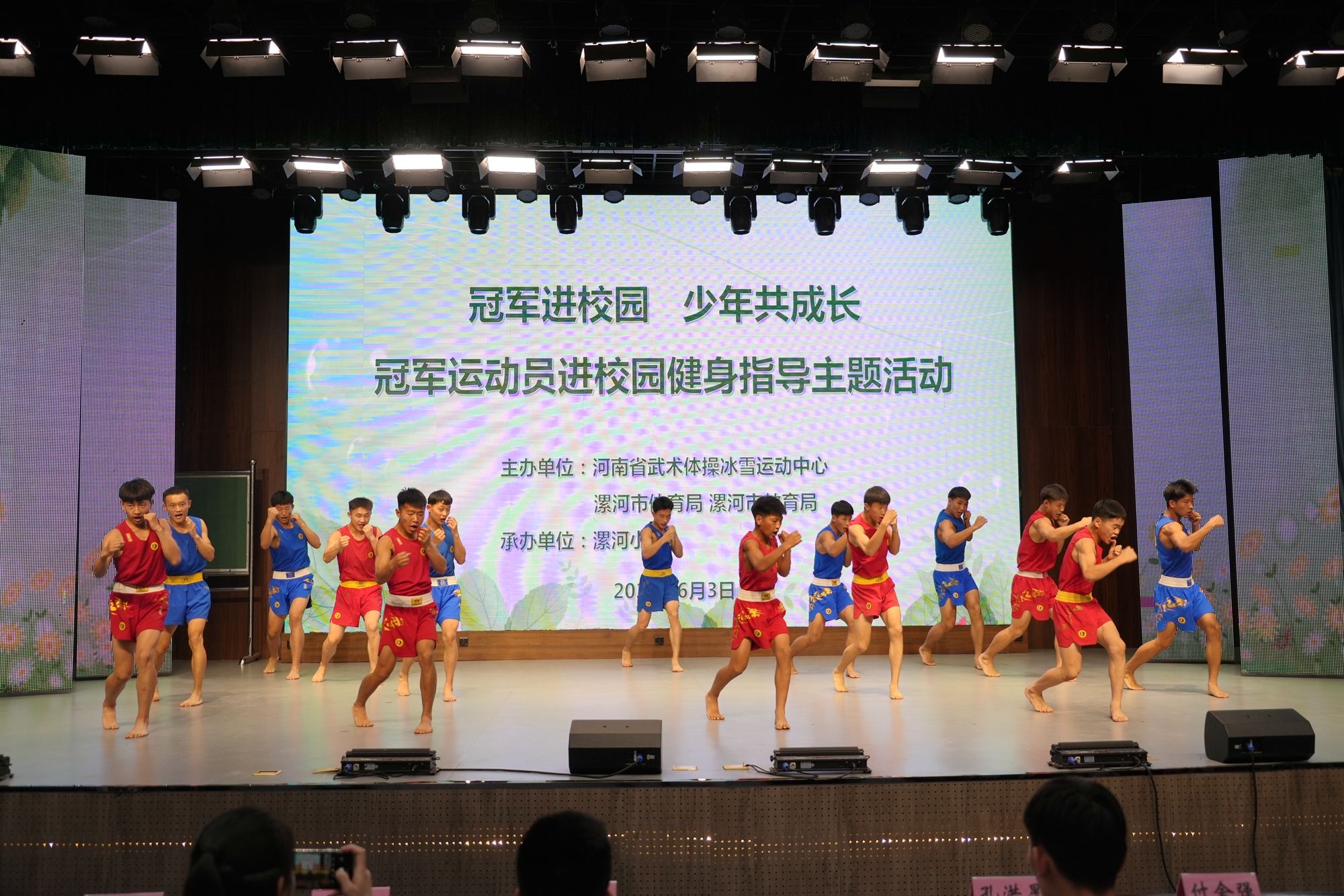 6月3日下午,漯河市培養(yǎng)輸送的世界武術散打冠軍孔洪星、申國順走進漯河小學,與該校師生進行了一場富有意義的互動活動。河南省武術體操冰雪運動中心副主任劉同濤,省武術體操冰雪運動中心紀檢專干李俊麗,漯河市文化廣電和旅游局(體育局)副局長付會強,漯河市教育局副局長郭俊偉,漯河市體育中心主任馬大草,漯河市教育局體衛(wèi)藝站站長陳國印,漯河小學黨總支書記丁俊生,漯河小學校長李蘊華出席本次活動。