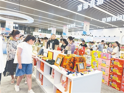 市民在中國(guó)食品名城品牌館內(nèi)選購商品。