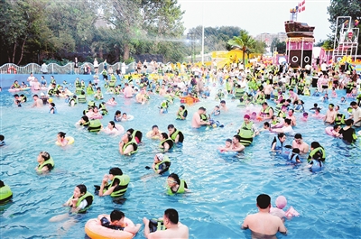 神州鳥園嬉水樂園內(nèi)人潮涌動。