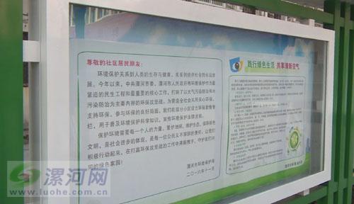 據(jù)了解,今年8月份以來,市環(huán)保局就策劃開展了“環(huán)保進(jìn)萬家”社區(qū)宣傳活動。市環(huán)保局在郾城區(qū)、源匯區(qū)、召陵區(qū)、經(jīng)濟(jì)技術(shù)開發(fā)區(qū)、城鄉(xiāng)一體化示范區(qū)和西城區(qū)各選擇2個(gè)居民小區(qū),組織開展社區(qū)環(huán)保宣傳。在選定的小區(qū)內(nèi)設(shè)置固定環(huán)保宣傳欄,定期更換內(nèi)容,開展環(huán)??破罩R宣傳、生態(tài)文明宣傳。在小區(qū)內(nèi)擺放宣傳版面,向居民宣傳展示全市污染防治工作進(jìn)展、環(huán)保法律法規(guī)、綠色環(huán)保理念及日常環(huán)保小知識。