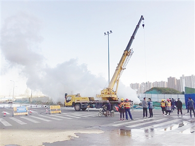 11月14日,在市區(qū)泰山路與嫩江路交叉口東南角,路邊擺放著“熱力施工 注意安全”的警示牌,在警示區(qū)域內(nèi),伴隨著機器的轟鳴聲,一根供熱管道排出濃濃的白色煙霧。這是漯河天陽供熱公司正在對具備運行條件的熱力管道進行運行前的吹洗工作,以保證泰山路(嫩江路至黃河路)沿線用戶正常供暖。