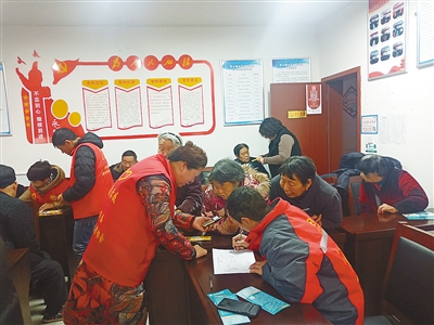 12月6日,漯河沙澧社工中心和市二院的志愿者走進(jìn)郾城區(qū)龍塔街道華山社區(qū),為老人免費發(fā)放黃手環(huán)。