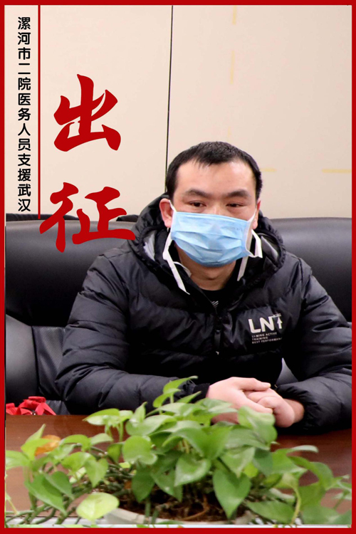 41歲的他是一名退伍軍人,自2006年進入醫(yī)院以來,一直從事后勤工作,至今已有14個年頭,始終踏踏實實、兢兢業(yè)業(yè)。在醫(yī)院黨委向廣大黨員干部、青年團員、全院職工發(fā)出組建疫情防控應(yīng)急預(yù)備隊的倡議書后,他也立即報名參戰(zhàn),這次需要奔赴武漢一線時,他說,我是退伍軍人,身體素質(zhì)好,就讓我去吧,保證圓滿完成任務(wù)。